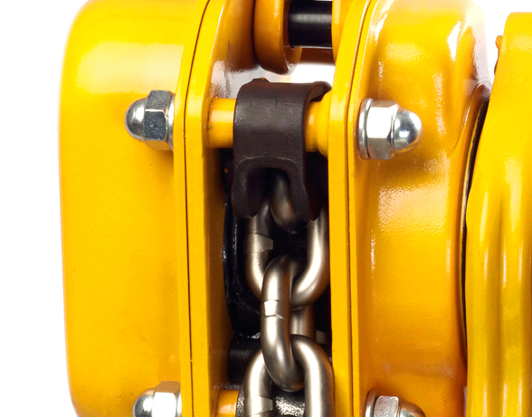 fácil ajuste de la cadena de carga y protección contra el rodado libre accidental bajo carga.